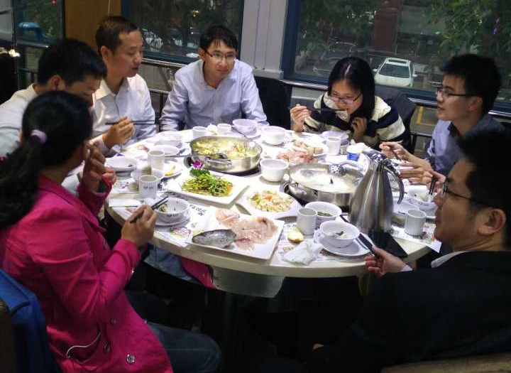 (在享受美(měi)味的(de)煮魚同時(shí),大(dà)家(jiā)歡聲笑(±↓<€xiào)語,暢所欲言。)