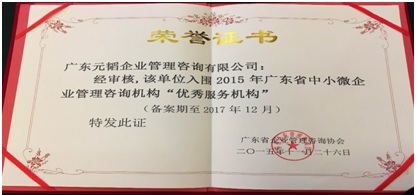 同時(shí),為(wèi)鼓勵管理(σ$εlǐ)咨詢行(xíng)業(yè)的(de)創新建設,促進中小(xiǎo)企業(yè)開(k' αāi)展管理(lǐ)咨詢活動,搭建中小(xiǎo)企業(y≤è)管理(lǐ)咨詢服務平台,樹(shù)立行(xíng)業(yè)标杆,省咨詢協會(h→∑&uì)為(wèi)廣東(dōng)省管理(lǐ)咨詢♣∏行(xíng)業(yè)優秀服務機(jī)構進行(xíng)了(le)表彰并頒發了(<€✘le) “入圍2015年(nián)廣東(dōng)省$≈中小(xiǎo)微(wēi)企業(yè)管理(lǐ)咨詢‘優±✔秀服務機(jī)構’”榮譽證書(shū)。元韬公司憑借優秀的(de±)專業(yè)能(néng)力以及在廣東(dōng)省管理(lǐε< )咨詢行(xíng)業(yè)的(de)良好(hǎo)聲譽獲此殊榮!