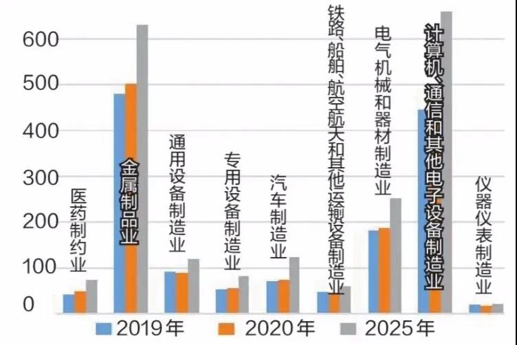 2020-2025年(nián)南(nán)方五省區(qū)高(g∏§ε☆āo)技(jì)術(shù)及裝備制(zhì)造業(yè)細分(fēn)行(xíng)業(yèΩ♦✘)用(yòng)電(diàn)量預測 (單位:億千瓦時(shí))