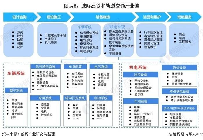 設計(jì)咨詢是(shì)工(gōng)程開(kāi)工(gōng)前期的(deα→)設計(jì)和(hé)可(kě)行(xíng)性咨詢環節,包括咨詢、規劃、勘察、測量↕&和(hé)設計(jì)等域;工(gōng)程建設指軌₩≠道(dào)交通(tōng)項目施工(gōng)環節,可(kě)分(fēn)為(wèi)₩↑工(gōng)程建設總承包、土(tǔ)建施工(gōng)和(hé)機(jī)電(di₩₽₹àn)安裝,安裝機(jī)電(diàn)包括通(tōng≥ <₩)信、信号、牽引供電(diàn)和(hé)電(diàn)力£÷供電(diàn)系統,即“四電(diàn)集成”工(gōng)程;裝備制(• zhì)造主要(yào)指軌道(dào)交通(tōng)的(de)車(chē)輛(li♠∞àng)系統和(hé)機(jī)電(diàn)系統的(de)制(zh©>ì)造,涉及機(jī)械制(zhì)造、電(diàn)子(zǐ)信息、高(gāoγ₩)分(fēn)子(zǐ)材料等多(duō)個(gè)領域:運營維護及增值服務,$↓包括軌道(dào)交通(tōng)傳統的(de)運營管理(lǐ)和(hé)物(w¥α∑ù)業(yè)、廣告、媒體(tǐ)商業(yè)、資源開(kāi)發等行(xín₹αg)業(yè)。