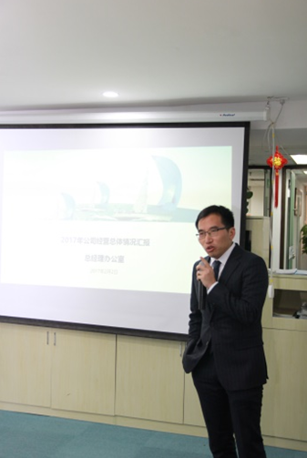 會(huì)議(yì)第三項議(yì)程,由總經理(lǐ)彭宏波先生(shē'→&ng)對(duì)公司2017年(nián)經營總體(tǐ)情況進行(xíng)了(le)總©'σ結。首先,彭宏波總經理(lǐ)向全體(tǐ)員(yuán)工(g$ ↔"ōng)強調了(le)“說(shuō)服力”這(zhè)一(yī)能>π₹$(néng)力的(de)重要(yào)性,并期望全體(tǐ)元韬人(rén) ₽σ随著(zhe)公司的(de)發展快(kuài)速成長(cháng)。