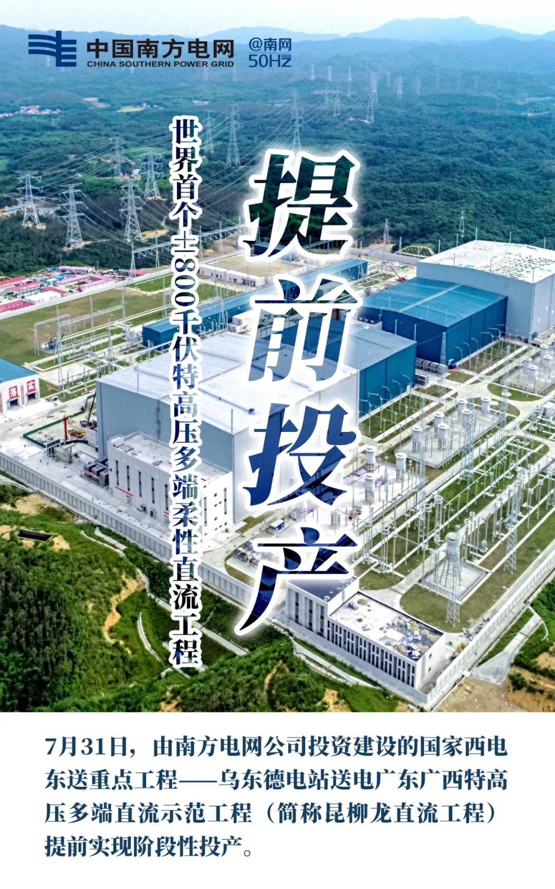 7月(yuè)31日(rì),由南(nán)方電(diàn)網公司投←•₽資建設的(de)國(guó)家(jiā)西(xī)電(di≠ ↓àn)東(dōng)送重點工(gōng)程——烏東(dōng)德電(diàn)站(zhàn)送電(dià↓γ'σn)廣東(dōng)廣西(xī)特高(gāo)壓多(duō)端直流示範工(gō©α>ng)程(簡稱昆柳龍直流工(gōng)程)提前實現(xiàn)階∞☆段性投産。