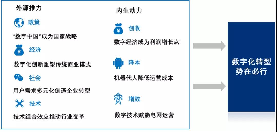電(diàn)網企業(yè)數(shù)字化(huà¥Ω₹§)轉型是(shì)內(nèi)外(wài)部驅動因素共同作(zuò)用(yòng)的☆¶ (de)結果。