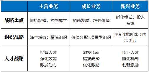 表:不(bù)同業(yè)務模式下(xià)的(de)組織和(hé)人( ™∞"rén)才戰略