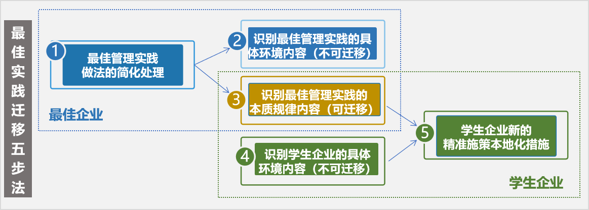 學生(shēng)企業(yè)在對(duì)最佳管理(lǐ)實踐在本'↕↔企業(yè)應用(yòng)時(shí),需要(yào)注意把可(kě)∑∑¥<遷移的(de)通(tōng)用(yòng)規律,結合學生(¥'shēng)企業(yè)的(de)特點進行(xíng)精準施策的(✔←←de)“本地(dì)化(huà)”應用(yòng)。