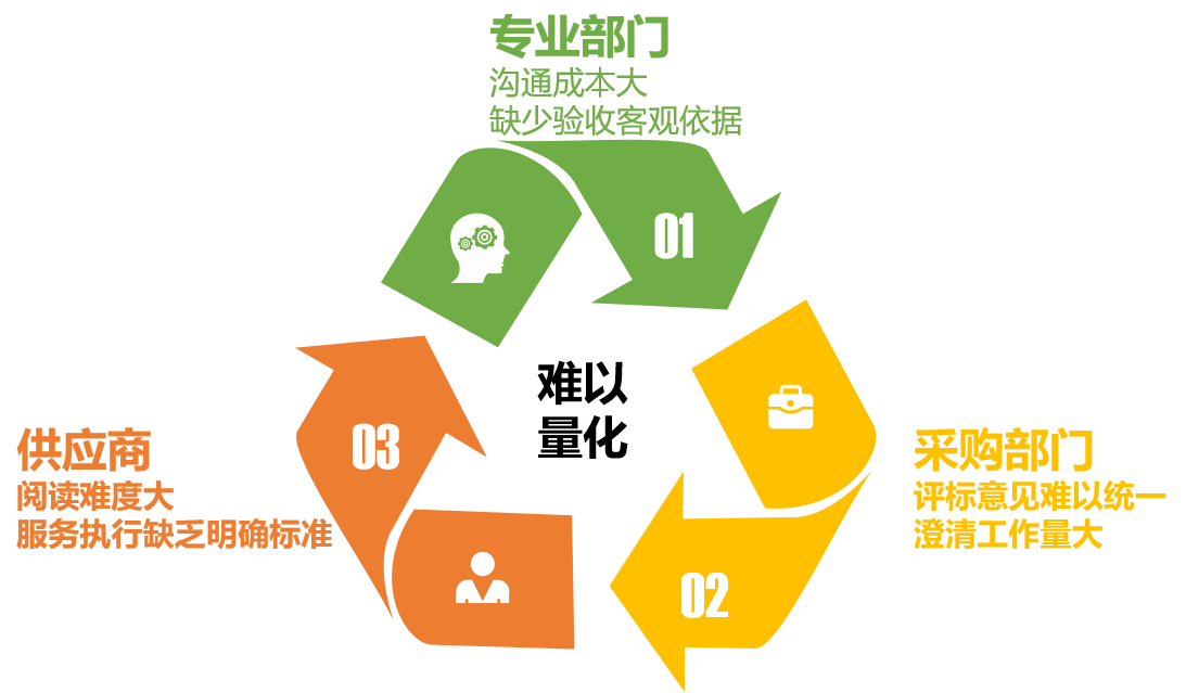 服務采購(gòu)是(shì)指政府為(wèi)了(le)支持正常的€✔(de)運作(zuò),通(tōng)過招标、競标的(de)方式從(cóng)供應商獲取本&✔§§身(shēn)不(bù)能(néng)或不(bù)願提供的(de)服務。服務本身(shēn)難以量化(huà),給專業(yè)部門☆∑→≠(mén)、采購(gòu)部門(mén)和(hé)供應商都(dōu)♦§帶來(lái)了(le)不(bù)同程度的(de)問(wèn)題。從(cóng)專業(yè)部門(mén)的(de)角度來(lái)看(kà≈☆♠≥n),溝通(tōng)成本大(dà),難以确保供應商完全理(lǐ)解×£采購(gòu)要(yào)求,缺乏對(duì)采購(gòu)服務的(de₹♠)驗收依據。從(cóng)采購(gòu)部門(mén)的(de)角÷÷×度來(lái)看(kàn),評标時(shí)不(bù)同的(de)專家(jiā)意見(jiàn)難以統一(yī),各執一(♣Ωyī)詞,且澄清工(gōng)作(zuò)量大(dà)。從(cóng)供應商的(de)角度來(lái)看(kàn),閱讀(dú)難度大(dà),同類服務要(yào)求不(bù)同的φ'(de)需求單位表述不(bù)一(yī),後續服務執行(xíng)缺乏明(míng)确要↓×£✘(yào)求。