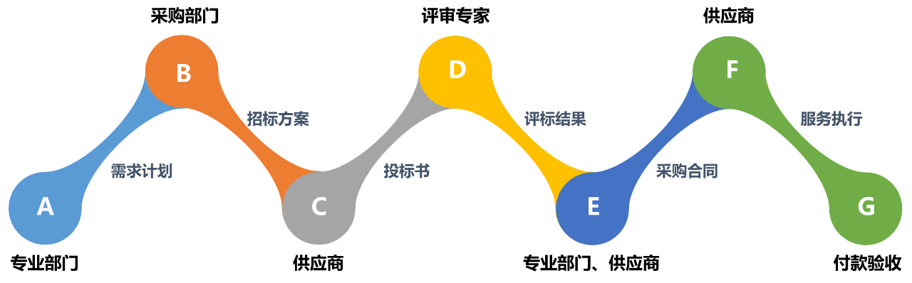 明(míng)确政府服務采購(gòu)全流程,辨析其關鍵節點以及連接不(bù)同節點的(de)溝通(tōnφ≠g)方式是(shì)進行(xíng)标準化(huà)建設,實現(xi✔↑≥àn)規範統一(yī)的(de)首要(yào)步驟。從(cóng)時(shí)間(j♠♠iān)順序上(shàng)來(lái)看(kàn),服務采購(gòu)全流程大(dà)體(tǐ)如(rú)下(xià):專業(yè)↕♣部門(mén)編制(zhì)需求計(jì)劃給采購(↔₩gòu)部門(mén),由采購(gòu)部門(mén)對(duì)需求計(jì)劃進行 ∞(xíng)審核以及整合,随後編制(zhì)招标方案并發布,供應商根據招标方案制(zhì)作(zu∏÷ò)投标書(shū)進行(xíng)投标,随機(jī)抽取的(de)評審專家(jiā)根據招≠>¶标方案以及供應商的(de)标書(shū)進行(xíng)擇優ε ∞評分(fēn),評标結束後對(duì)結果進行(xíngβ≤ )公示,有(yǒu)異議(yì)則進行(xíng)澄清,無異議(yì)則簽訂合同,開(kāi)$↑★<始服務執行(xíng),最終付款結算(suàn)。