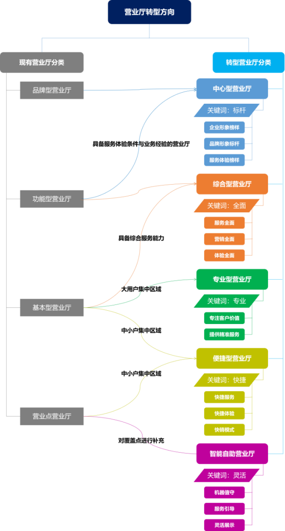 圖:不(bù)同層級營業(yè)廳轉型方向示例圖